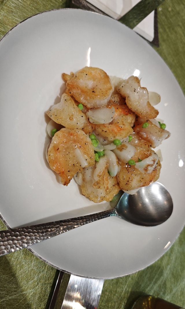 石锅花椒牛仔粒,胜瓜煮罗定鱼腐,玻璃脆皮乳鸽