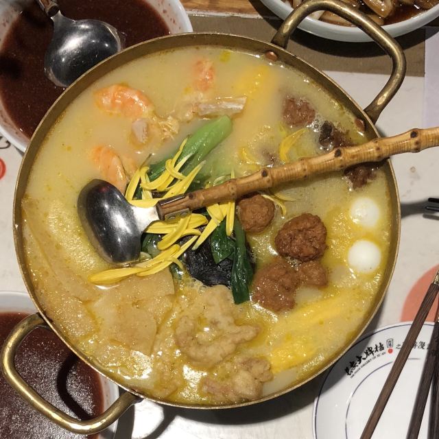 qmxc【口味】点了他们家的甑糕,配料不错,但感觉不是现蒸出来的,是加热过的。 桂花枣模糊,这个不错,里面有莲子,而且确实能感觉到是枣磨的。 另外,还有茶水与小吃。 【环境】古色古香,还是他们家特有的四人小桌,另外也有大桌。 门口等位区是鼓凳。 【服务】很好,现在也是自助扫码点餐。
