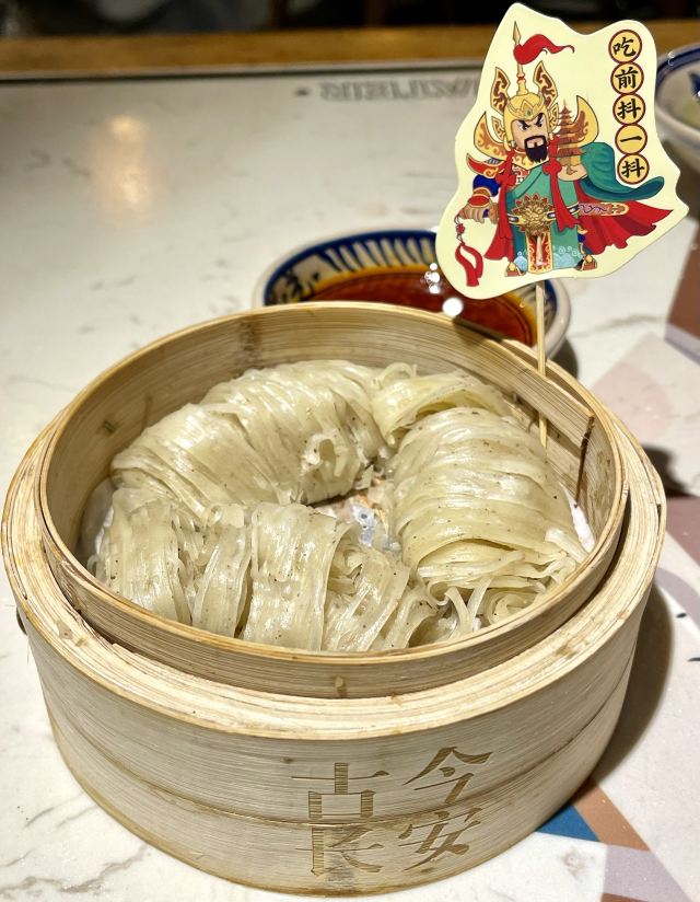 麻将十三幺,妃子笑,长安葫芦鸡,油泼面(四合一),毛笔酥,关中六小碗,手工面皮捞牛肉,醪糟冰淇淋,豆皮涮牛肚,秦镇米皮,玉兔杏仁豆腐,面皮捞牛肉,脆皮老醋里脊,仙桃酒,霸王醋椒肘子,泾阳老甑糕,烤肉筋儿,甑糕,油泼面,西安烤肉