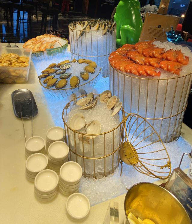 三文鱼,阿拉斯加大蟹腿,三吃湛江生蚝,大闸蟹,茅台巧克力冰淇淋,烧烤,牛排,海鲜,咖啡,茅台西凤冰淇淋双拼,龙虾,刺身,法式甜品,螃蟹,海鲜烩饭