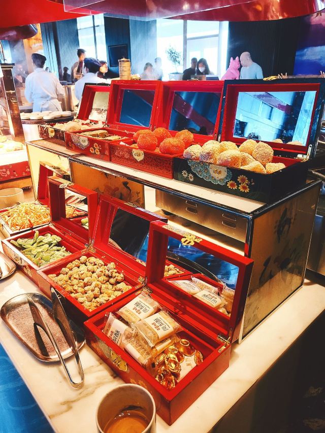 amydog🍝住店客的早餐,出乎意料的惊喜 2020-5-17 😷元年,却还是能够提供自助餐形式的早餐,真的要哭了,这一路真的太多酒店不能提供了 百宝箱里的点心,都是西安特色小点心,还都蛮好吃的呢