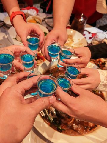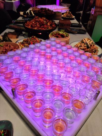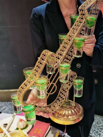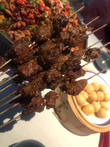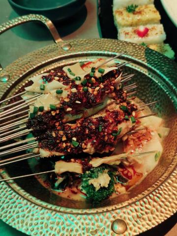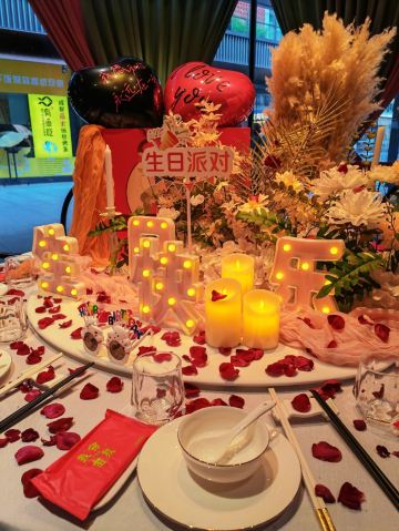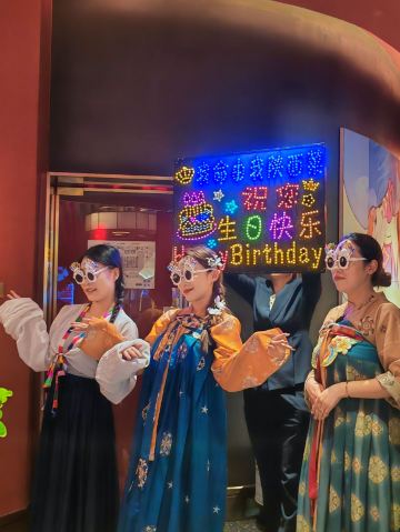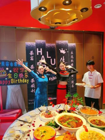 ttqqll9这家店在曲江创意谷,大红大绿的中国色,看着看着就有活力,来这过生日,好几个套餐可选(生日套餐价格双人268💰4-5人456💰8-10人888💰),朋友选的是888,性价比超高,不仅赠送生日装扮,还有寿面、寿桃、伴手礼,以为这就结束了嘛?还有专属舞蹈演绎,简直就是皇上的感觉!菜品也很丰盛,陕西特色的葫芦鸡、瀛湖大鱼头、金汤小青龙、妃子笑等菜品既有特色味道也很地道。吃完生日宴还可以在大厅看歌舞表演,舞台位置比较高,这样欣赏起来就很方便,布置的也是霓虹闪烁,欣赏舞蹈时候想喝酒有鹤顶红、摩天轮、绿色吉他等鸡尾酒,不仅上镜而且味道甜美,烤肉更是划算,99元500串,一份基本一桌就够了,来这确实做到了吃好、玩好、看好、开心好!妥妥的续命!