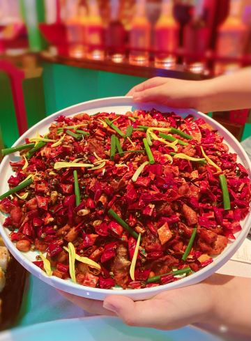 🎤 如果爱🍶店名:我命由我.唐宫酒馆中国菜 地址:雁翔路3369号曲江创意谷地上L层(中央广场) 人均:60 营业时间:10:00——02:00 最网红的创意菜 从开业以来一直到现在,每天都是爆满,排队已经是常态了,所以就可想而知他家生意有多火爆。 他家每天接待慕名而来的顾客特别多,已经是各大平台广为流传的西安的必打卡餐厅了。 店铺环境好,中式仿古的装修装饰,布置的像是到了天宫一样。还有一个舞台,时不时的会有跳舞的小姐姐在上面为大家跳舞。跳的也超好。这家店非常适合拍照打卡,超级出片。 服务也是特别到位,每个服务员都很有服务意识。服务员也是古装装扮哦。给人的感觉真的是穿越到了古时候的那个年代。 菜品做的特别地道,味道超棒,咸淡适中,不会很油腻,而且量也比较大,真的是性价比超高。没吃过的盆友一定要去试一试。 【点单推荐】 我命由我大辣炒鸡:分量太足了,点的小份四个人最终都没吃完。真的是性价比之王。主要是味道也特别好,这个不愧是头牌。 老醋里脊:量也比较大,酸爽可口那种的,吃起来也不错。 外婆菜炒鸡蛋:很家常口味的一道菜,而且也很下饭。咸淡适中,也不会很油腻。 来他家吃饭的小伙伴们一定要量力而行,别眼大肚子小,他家菜量大,点多了真的是不一定能吃完哦😂 喜欢追网红风的小伙伴们快冲吧!!!