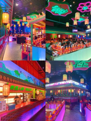别学设计终于知道为什么古代皇帝👑爱吃饭看跳舞💃了,感谢网友,真的好吃好看到迷糊。只恨自己知道的来得太晚啦[偷笑][偷笑][偷笑]。 「我命由我·唐宫酒馆中国菜」真的是刷新了我的眼界,咱们西安竟然还有这么有氛围感🌃的唐宫中国菜小酒馆。在这里吃饭瞬间让你梦回长安,沉浸式唐风用餐, 而且价格非常平价,真是个宝藏餐厅。 📸店面风格:店面装修真是下了大功夫,沉浸式的唐宫风格拉满,而且结合现代色彩鲜明🌈的灯带,大厅区域打造了通高3层的阁楼式舞台,整体舞台感光效果也非常好,堪比夜总会🪩。每个包间也很有唐风特色。少许现代风格点缀,个性十足。 🍶吧台设计艳丽,宽度很长,特别有气势,各种花酒陈列有序,正面的葫芦装饰墙视觉冲击力十足。 ✨菜品特色:创意菜+西安特色小吃+烧烤+酒馆模式。新颖别致🌼🌼🌼。 「鲜椒辣子鸡」分量很大,咸香酥脆,特别好吃,🌶️辣度刚好,下酒又下饭。 「蒜香粉丝虾」上桌现做,锅气满满,新鲜食欲看得见,🦐虾品质很好,个头很大。 「红尘妃子笑」颜值造型突破你的认知,菜见名如见菜,整了荔枝树造型真的绝了,上边挂的荔枝是酥脆的虾球,腾云驾雾,好看又好吃。请客必点。 「贵妃凉糕」本地传统小吃,清爽解腻,爱吃甜品的朋友不容错过。 还有各类西安本地烧烤🍢,好吃不贵,种类也很多。 💁服务态度:从门口迎宾到就餐,整体服务💁都很好,还有消毒湿巾这点体验很好,上菜速度⚡️也非常快。 📌TIPS:演出美15分钟就一次,中式舞曲和现代歌穿插,满足不同年龄段,特别适合打卡拍照。 地址:曲江创意谷中央广场旁。 人均:60-70元 交通:🅿️停车方便,🚇地铁5号线直达。 时间:营业至晚上12点。