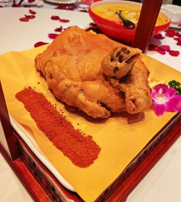 YoYo_4R3Q4N9S🍻国庆来西安旅游的朋友不知道吃什么?看看这家平价又漂亮的陕菜餐厅!就在创意谷!离大唐不夜城很近,餐厅环境很有长安特色,拍照超好看,餐厅里面竟然还有舞台演出表演,仿佛置身于大唐盛世!陕菜做的太精致了,菜品很丰富,老少皆宜,性价比高,人均60!量大管饱,地道陕西美味!店员小姐姐很温柔,询问了我们的口味推荐了最火的葫芦鸡,桂花凉糕,豆皮涮牛肚,榆林酸菜炖豆腐,biangbiang面,都是陕西特色菜品,而且是现炒现做的,锅气十足,健康饮食👍🏻🌈葫芦鸡太好吃了,鸡肉表皮是酥脆的,蘸料吃好香!还有一壶热腾腾的鸡汤,超好喝!必点!🌈第一次吃biangbiang面,面条很劲道有嚼劲,浇头味道不错,不愧是陕西特色!🌈爱吃豆腐所以点了榆林酸菜炖豆腐,没想到酸菜特别好吃的,跟东北酸菜不一样,值得尝尝❤️🌈桂花凉糕桂花味道很浓郁,吃一口满口留香,回味无穷!