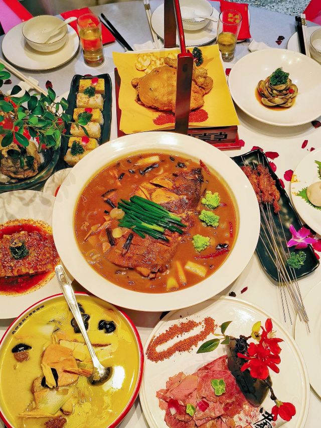 菠萝001🎂🎉庆生首选,我命由我中国菜! 🌟踏入“我命由我·中国菜”的那一刻,仿佛置身于一幅流动的诗意画卷中。古朴的装修风格,精致的木艺与古典元素交织,仿佛穿越回了那遥远的时光。🌿 🍜生日当天,怎能少了寓意长寿的长寿面?那滑嫩的面条,搭配醇香的汤底,每一口都是满满的祝福。而那豆沙仙桃包,甜而不腻,如同生日的甜蜜与温馨。🍑 🍖坊上烤肉筋,是这里的另一大特色。148元即可品尝到500串的烤肉,性价比超高,让你尽情享受烤肉的乐趣。🔥还有那葫芦鸡、陕味瀛湖大鱼头,每一道菜都是对味蕾的极致诱惑。🐟 🎁生日套餐更是诚意满满!双人套餐仅需268元,4-5人套餐456元,8-10人套餐888元。更有仙桃赠送、长寿面赠送、生日伴手礼、生日氛围布置以及生日演绎专属舞蹈等福利等你来拿!🎈 💕过生日,就来“我命由我·中国菜”,让美食与温馨的氛围,为你的生日增添更多色彩!🎂🎊
