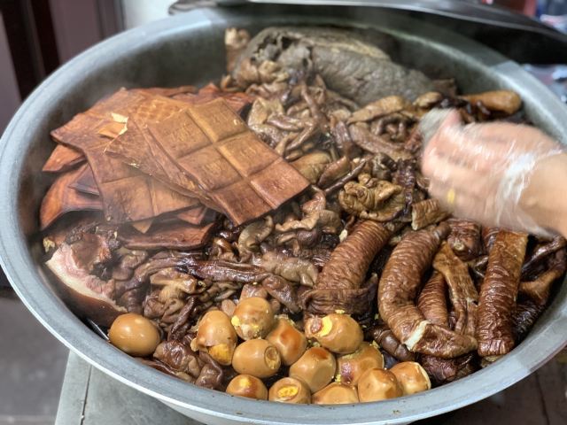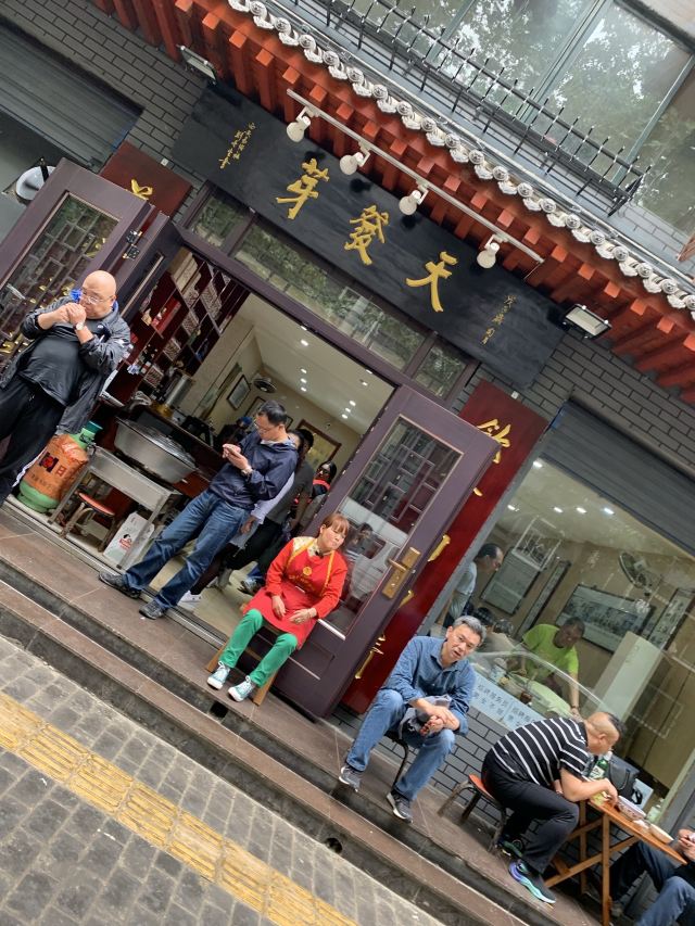 街头一家老店,门脸不大,但这里的葫芦头做的很地道。葫芦头就是猪大肠,因为油脂较厚形状象葫芦,所以叫这个名字,是陕西汉族的风味小吃。汤头味道浓厚,肥肠处理得干净,煮得有嚼头,加一个馍,再和当地人那样来一瓣紫皮大蒜头,吃得很过瘾。门口还有大锅,做着各种熏菜,梆梆肉很赞,值得一试。