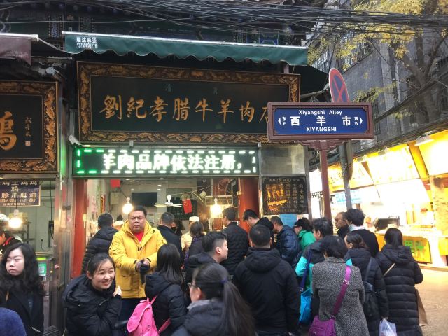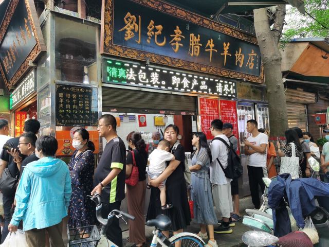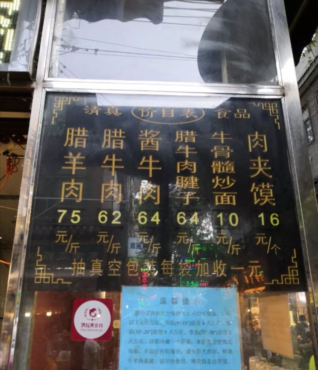 腊牛肉、腊羊肉是西安回坊的著名传统小吃,但是谁家也没有西羊市刘纪孝的火,虽然价格不菲,但味道十分不错,从早到晚这里永远排着长队,有当地人也有外地人专程前来购买,前一日做得的腊肉当日售罄,让周围的店铺眼红。