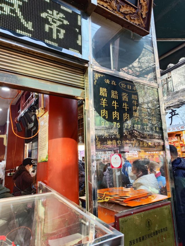 这是西安人气非常火爆的一家腊制牛羊肉店,门店前总是排着长长的队伍,如果你是逢年过节去,可要好好算算自己的时间。他家的招牌就是腊牛腱子,带一点肥肉和牛筋,吃起来有嚼头,很入味又特别的酥软。还可以在店内购买真空包装的,便于回家送人。店内的服务员个个很忙,但态度还算是不错。