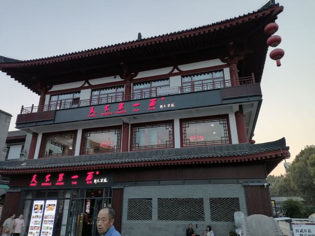 First Noodle Under The Sun菜是预制的,服务是一点没有的,纯坑外地游客,别来,都别来,一碗面正常十二,他家买十七,很小一份凉粉十九块,性价比一点都不高,墙上挂的都是什么什么奖,人家忙的服务客人的店肯定没时间去评什么奖,大家想吃面可以去河套平原,鸿雁故乡,巴彦淖尔,河套雪花粉和别的地方都不一样