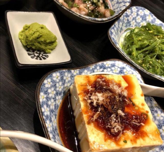 麻汁芦笋,蒜蓉烧烤小鲍鱼,鳗鱼手握,蒸蛋,三文鱼手卷,三文鱼手握,日式炒面,煎饺,烤鳕鱼,泡菜火锅,牛肉火锅,三文鱼拼北极贝,韩式火锅,蟹子沙拉,蔬菜天妇罗,刺身,金枪鱼刺身,三文鱼,冰激凌寿司,烤鳗鱼,蟹籽沙拉,梅酒,秘制烤鳗鱼,照烧银鳕鱼,海洋的呼唤,花生豆腐,牛肉泡菜锅,胡麻豆腐,冰淇淋寿司,加州卷,石锅拌饭,天妇罗,串烧,干剪鳕鱼,豆腐
