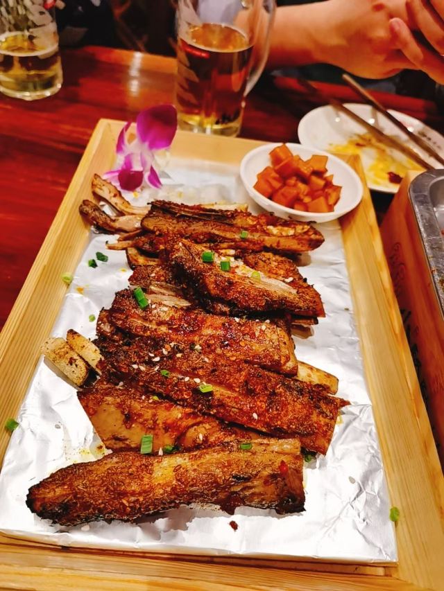 蒜蓉粉丝烤生蚝扇贝,烤羊肉,香辣花蛤,烤虾,蒜蓉油馍,蒜香风琴油馍,烤串,香烤大虾,烤鸡翅,特色烤板筋,金牌酸辣白菜,招牌川椒爆毛肚,焦香鸡脆骨,香辣炒花蛤,中粮烤肉油