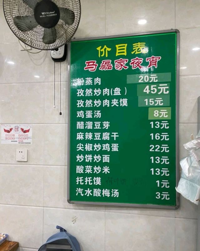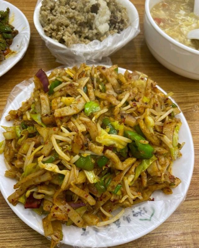 鸡蛋汤,孜然炒肉,炒豆芽,孜然炒肉夹馍,粉蒸肉,醋溜豆芽,青椒炒牛肉,炒面,酸菜炒米,青椒炒鸡蛋,胡辣汤,荷叶饼,麻辣豆腐干,酸梅汤