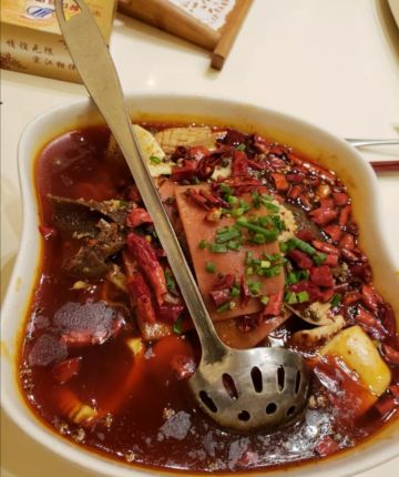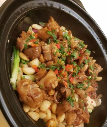 宗江一品肉,特色菜品,肥而不腻,咸菜裹肉夹馍,味道不错。 毛血旺,味道挺正宗的,有点辣,配菜丰富。 河水豆花,分量多,蘸料有两种,红油和青椒,味道不错。 小土豆烧鸡,小土豆香软入味。