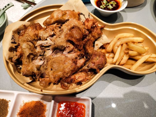 这是一家专做陕西菜的连锁餐厅,装修风格复古风。 餐厅以陕西地方特色菜为主打,招牌菜有葫芦鸡,拔丝红薯、油饼等。葫芦鸡是必点的,口感酥脆而不油腻,配有干辣椒面、胡椒面、红油辣椒,可根据自己口感蘸料吃。