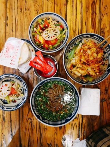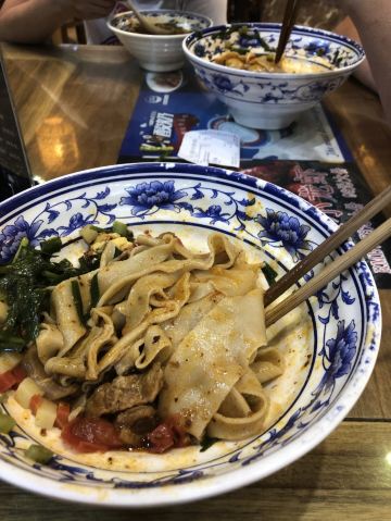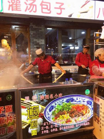 早晨的飞机,酒店离回民街近,就在回民街随便找了一家尝尝当地美食,油泼面、biangbiang面、凉皮、羊肉泡馍、麻辣羊蹄都点了一份,分量足,味道一般,凉皮可以用难吃来形容了。羊蹄软烂,味道不错。个人觉得油泼面味道算是最好的了。服务态度很差,没有点饮料没有点茶水,只要了白水,服务员就开始黑脸了,白水催了三次才给我们上。总之体验很差。大家如果想吃西安小吃什么的还是问一下当地导游或酒店人员,他们自己喜欢去哪些正宗的店铺,回民街逛逛就好,看个热闹,吃就算了。