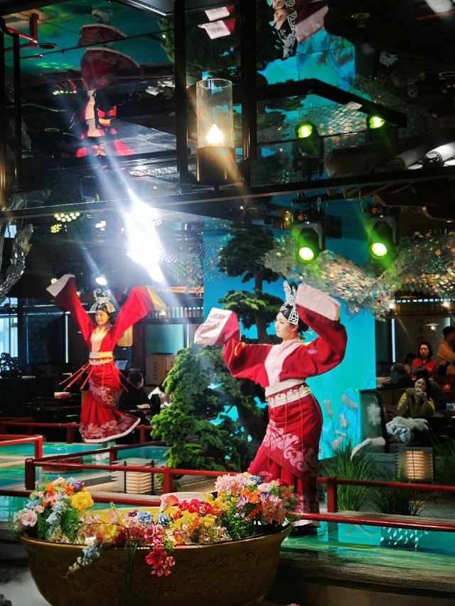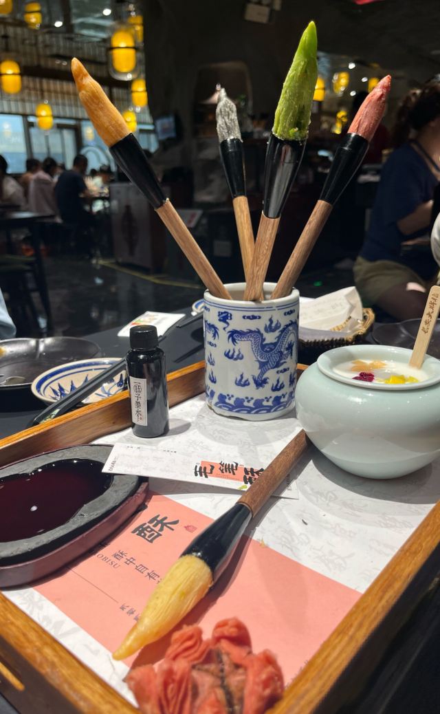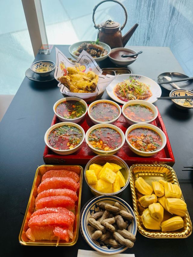 东篱把酒@🏮赛格顶楼藏了个“唐朝夜市” 长安大牌档之陕历博文化餐厅开在赛格六楼,电梯直达,逛完街无缝衔接吃饭,位置是真真方便!✨ 环境一绝,推门就像跌进盛唐集市!🪔灯笼高挂,书架摆着仿古食盒,墙上是大幅“唐诗卷轴”,连服务生都穿着唐装襦裙。餐桌间距稍近,饭点人声鼎沸,但热闹得很有氛围,仿佛在逛上元灯会~ 点单率超高的三道菜: 1. 葫芦鸡——镇店王牌!🐔用葫芦形餐具盛着,鸡皮炸得金灿灿,薄脆如纸。筷子一捅,“咔嚓”声响,里面鸡肉却嫩得流汁!蘸点特调辣椒面,咸香酥嫩在嘴里炸开,不愧是“长安第一味”! 2. 毛笔酥——文创美食天花板🖌️!端上来是一盘“文房四宝”,毛笔头实则是酥脆点心,笔尖蘸着蓝莓酱“墨汁”,咸甜交织,好玩又好吃~ 3. 妃子笑——颜值担当!🌿树枝挂满红艳“荔枝”,其实是虾球裹着脆粒,咬开Q弹虾肉还爆浆!配酸甜酱,妥妥的宫廷体验。 服务很麻利,唐装小姐姐会主动介绍菜品典故。周末晚市需排队半小时左右,但上菜速度惊喜,点完不到20分钟全齐~人均💰100左右,在景区商圈性价比算扛打! 出门就是赛格网红扶梯和室内瀑布,饭后消食拍个照,完美半天安排!总之,想体验陕西文化+美食一次性打卡,这里准没错~#陕西美食暗号是“嘹咋咧”#