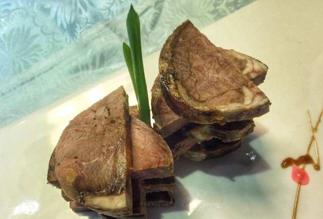 以陕西菜为主的海市南亭轩,位于城墙根下,一道照壁古香古色,典雅大气的大门,给人浓重的历史感。菜品是非常地道的陕西风味,精致细腻,汁浓味香。麻皮猪蹄是他家的镇店菜,色泽金黄,先卤后烤,口感外酥里嫩,嚼香回味无穷。