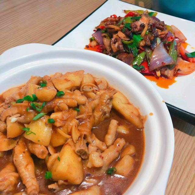 脆皮猪手,葫芦鸡,羊肉口袋菜,油泼桂鱼,秦韵虾球,布袋羊肉,捞汁冰菜,八宝鸭,五香牛腱,金边白菜,西安凉皮,臊子面,海市鸳鸯丝,腰果全素,疙瘩汤,金蒜黑椒安格斯牛肉粒168,百草鸭,鲍鱼汁海皇豆腐,传统农家油饼,菌菇竹荪汤,烤牛排,三皮丝