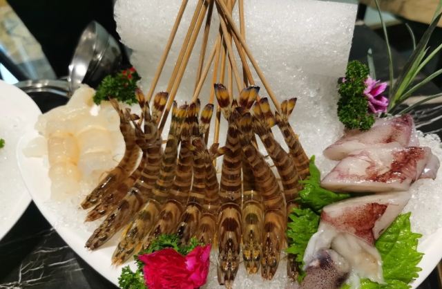 老虎斑,招牌菌汤锅,小排牛肉粒,5A三角牛腩和牛粒,5A和牛上脑,鲜活斑节虾,甄选和牛拼盘,手打鲜斑节虾丸,杨枝甘露,招牌松茸菌汤底,宫廷花胶鸡浓汤,黄金娃娃菜,酱料,世界海鲜拼盘