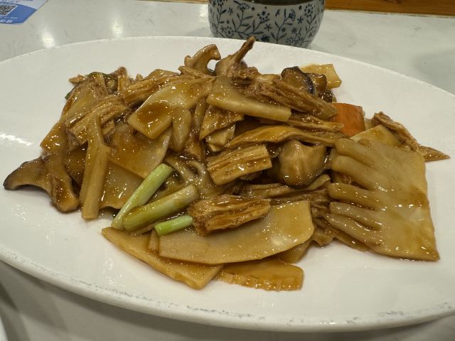 牛肉韭黄锅贴,养胃疙瘩汤,八宝粥,牛肉韭黄馅,双椒鸡捞面,椒盐平菇,长安八宝葫芦鸡,椒盐蘑菇,松鼠桂鱼,豆芽面筋