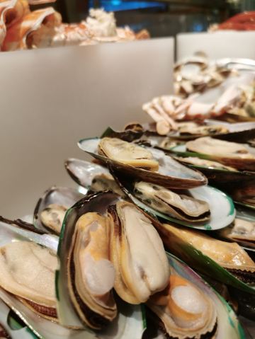 冷盘海鲜区的种类相当丰富,鲍鱼,帝王蟹,生蚝,大虾,扇贝,青口应有尽有,特别是生蚝,原只空运现开,每一个都超大,就是渔船上捞起马上入口的口感,无限量提供,太任性啦。