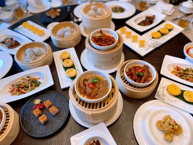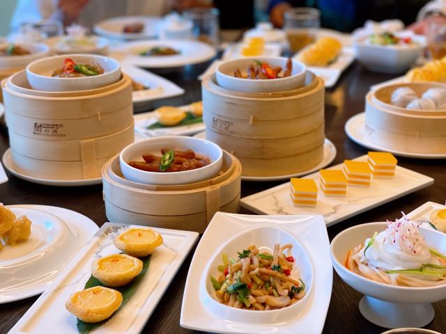 山葵东瀛虾球,清蒸东星斑,黑松露虾饺皇,胶州凤尾紫玉兰,周末单人粤式点心自助,金酱芥末老虎虾球,樟树港辣椒炒雪花牛肉,玻璃脆皮乳鸽,明炉吊烧鹅,杨枝甘露,大理石石锅豆腐,西风火焰竹炭和牛肋,黑松露瓦罉焗鸡,罗勒叶鹅肝炒雪花牛肉,和味手工茄子,黑蒜甘蓝炒鲜带子,担担面,松茸响螺功夫汤