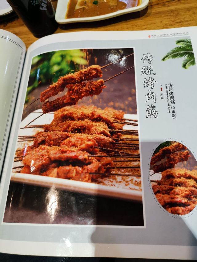 西安好像好几家店,每家都很有特色。主打的串有烤肥瘦,烤肉筋,都是一块钱一串,非常的给力,吃多少都不够。另外还推荐新疆椒麻鸡,非常刺激。对了还有豆皮,其实是干豆腐,不过也很好吃。