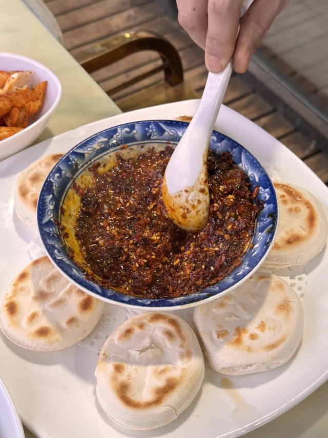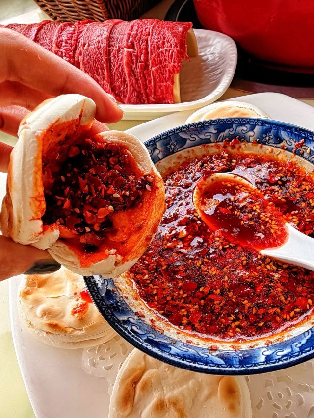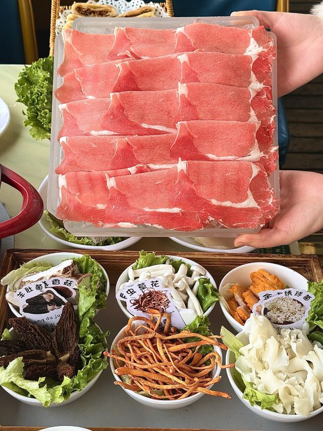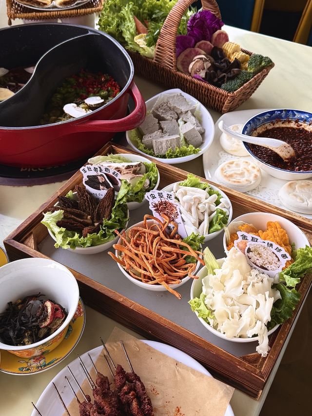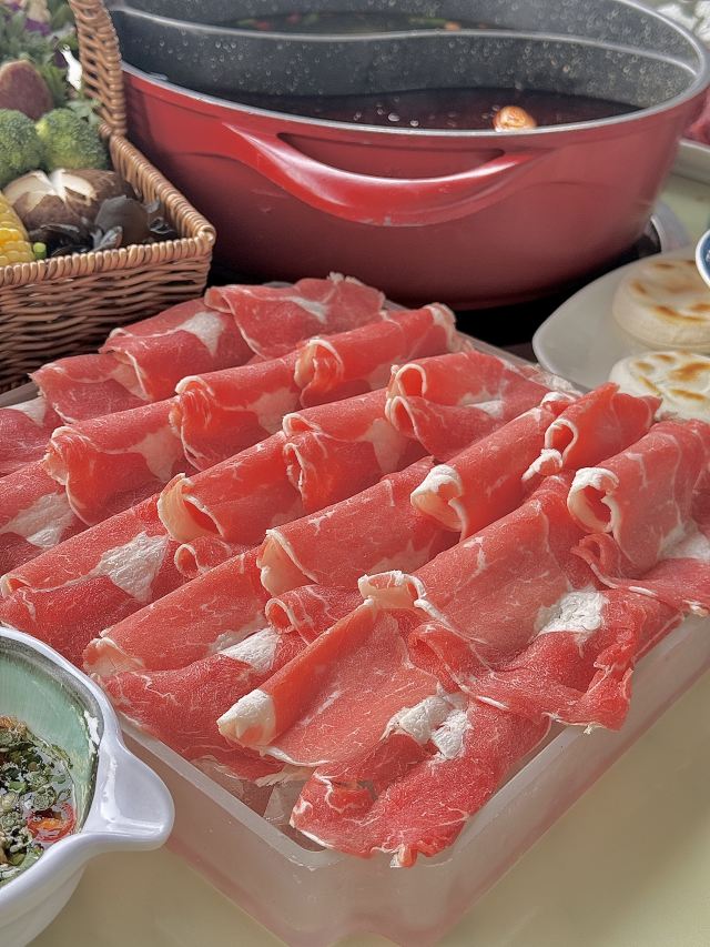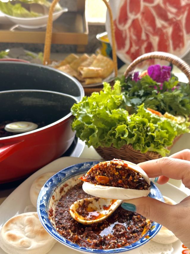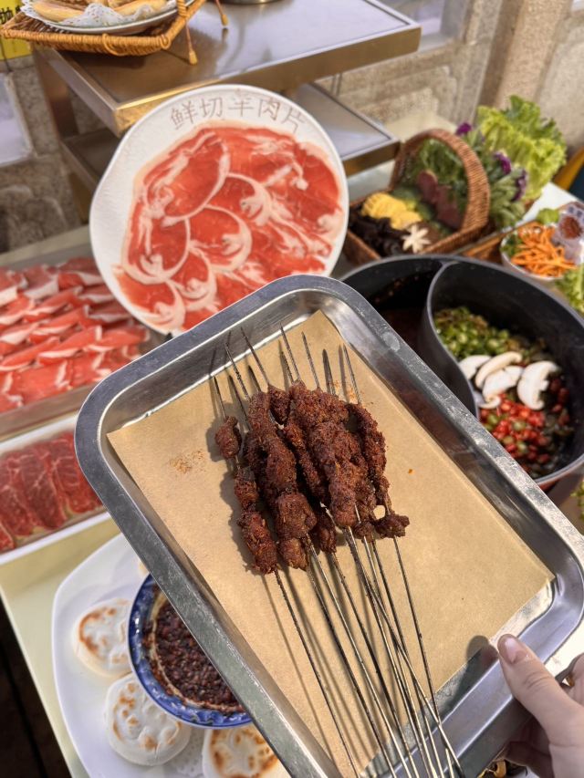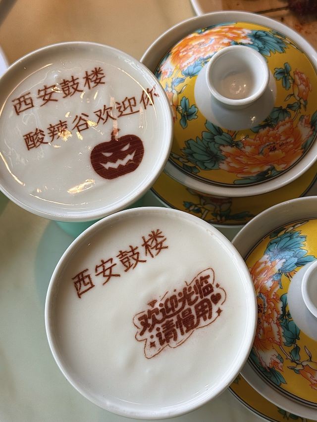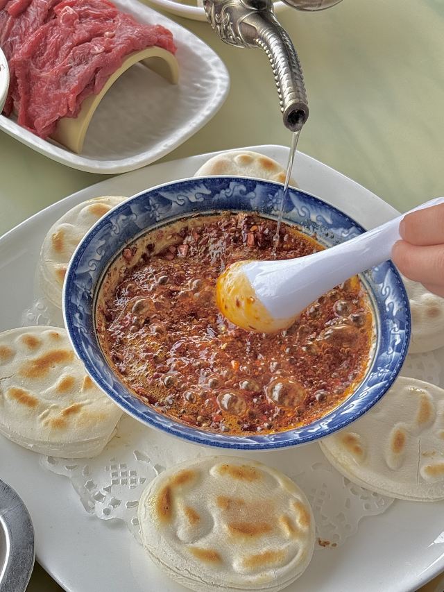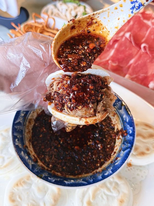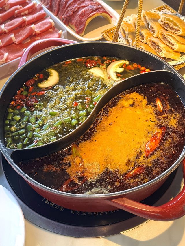 HOT & PICKLED VALLEY HOTPOT(HALAL RESTURANT)没人能拒绝在鼓楼旁边,一边涮肉一边看城墙鼓楼🌆 不是网红店,是真·土著私藏,十年了还是顶流水准! 锅底闭眼点麻辣孜然+酸菜双拼🍲 孜然香浓郁,酸菜解腻又提鲜,涮羊肉一点膻味都没有 现切的九秒鲜牛肉,裹上油泼辣子入口嫩滑 夹进小饼里直接封神🔥 还有印字酸奶、各种地道陕西小吃