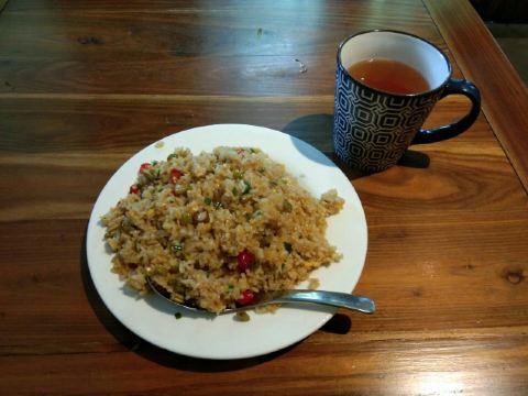 阳朔蛋炒饭――望江楼餐吧,非昨天兴坪的同名客栈,而是在阳朔哦。原价16元阳朔蛋炒饭,团购特价8.8元,实际就是加了红尖辣椒的蛋炒饭,略微偏油与份量偏少。