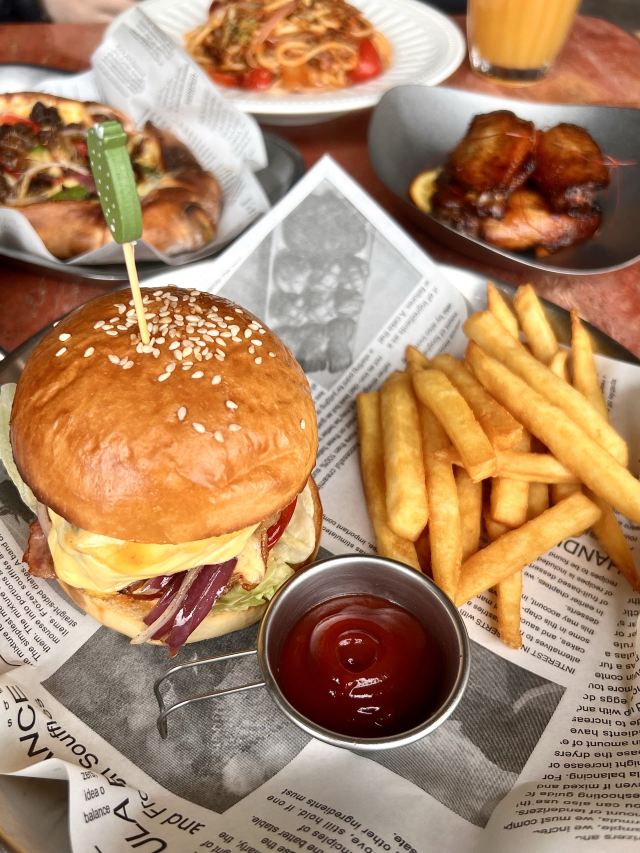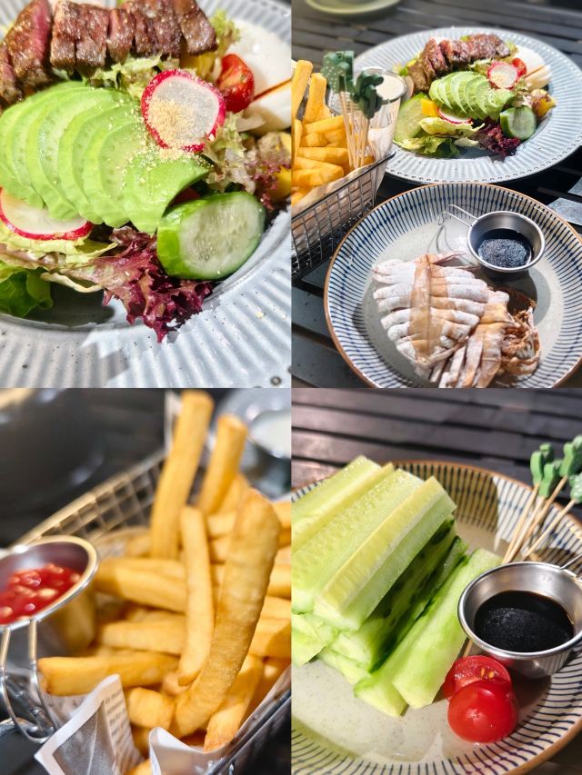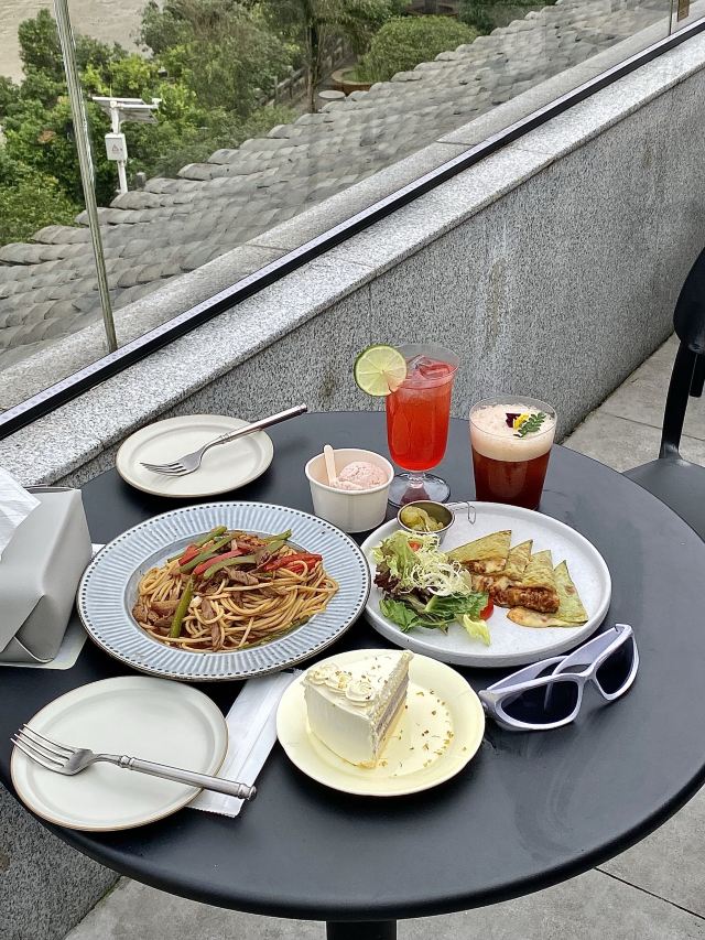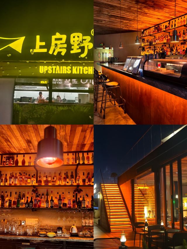 UPSTAIRS KITCHEN在一家酒店的4楼 白天是喝咖啡吃简餐的地方 到晚上就是小清吧,放着音乐还挺有氛围的😍 户外露台宽敞拍照📷超好看的,可以看到山水美景🌊⛰️ 室内沙发🛋️躺坐的都好舒服哦……