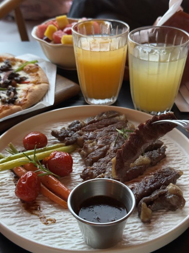 好吃的栗子鸭🔥桂林新晋顶流!这家江景bistro让我连吃3天都不腻!! 这家「上房野BISTRO」直接刷新我对西餐的认知🤯 露台view随便拍都很出片 漓江山水直接当餐桌背景🌊 🥩澳洲草饲原切肉眼 一刀下去肉汁biu出来!!🥩嚼起来爆汁 带点嚼劲又不柴 周边没有肥肉 搭配的酱汁也不会喧宾夺主遮住肉的原香 5分熟刚刚好 配红酒绝绝子 🍕藤椒黄牛肉披萨 中西合璧的神仙操作!麻辣鲜香还会拉丝!! 牛肉鲜嫩多汁 藤椒清香微麻 搭配酥脆饼底 芝士浓郁拉丝 口感丰富,风味独特 🍓切壳now水果碗 解腻神器!现切水果超新鲜 拍照也巨出片~ 新鲜水果切得整整齐齐 种类超多 红红绿绿看着就诱人 吃一口,甜滋滋、脆生生,清爽解渴,真过瘾! 🌇私藏机位: 下午5-6点来!夕阳给漓江镀金边的时候 随手拍都是大片即视感📸 (偷偷说 二楼转角座位最出片!) 📍导航直接搜"上房野BISTRO" 阳朔西街步行5分钟就到~