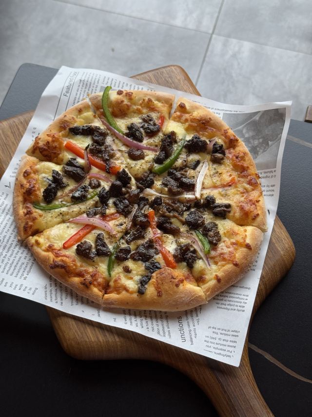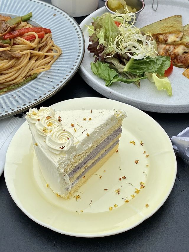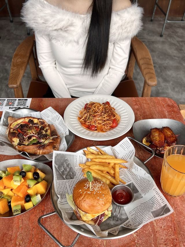 藤椒黄牛肉披萨,荔浦芋泥蛋糕,纽约芝士蛋糕,椰椰拿铁,脏脏咖啡,澳白