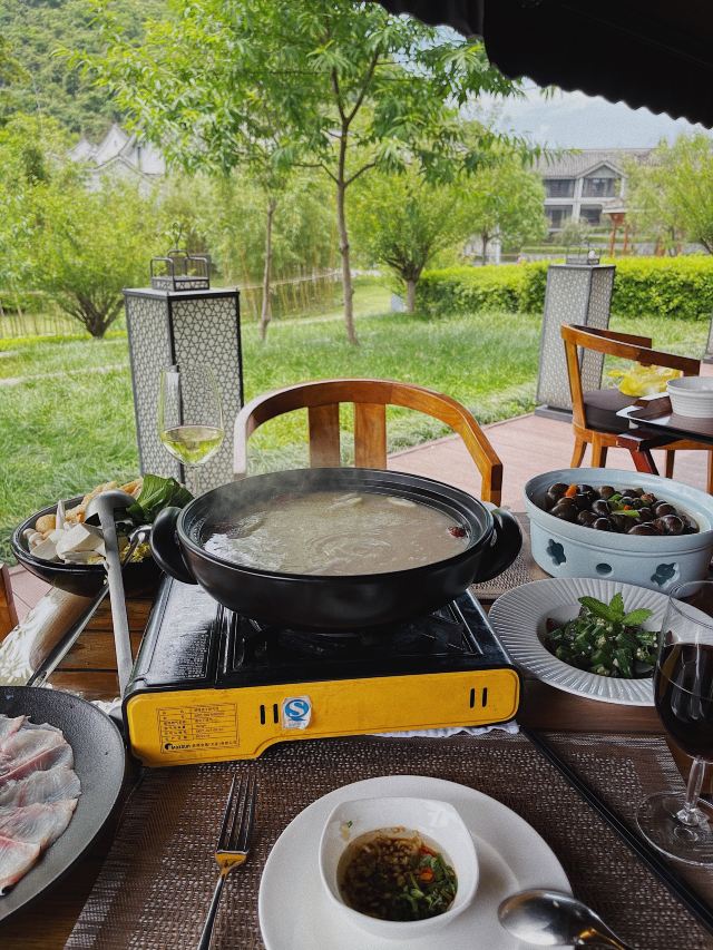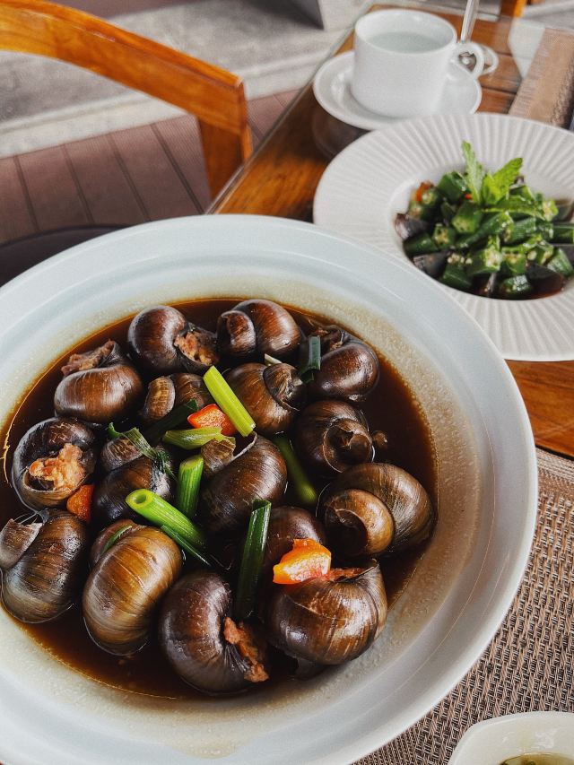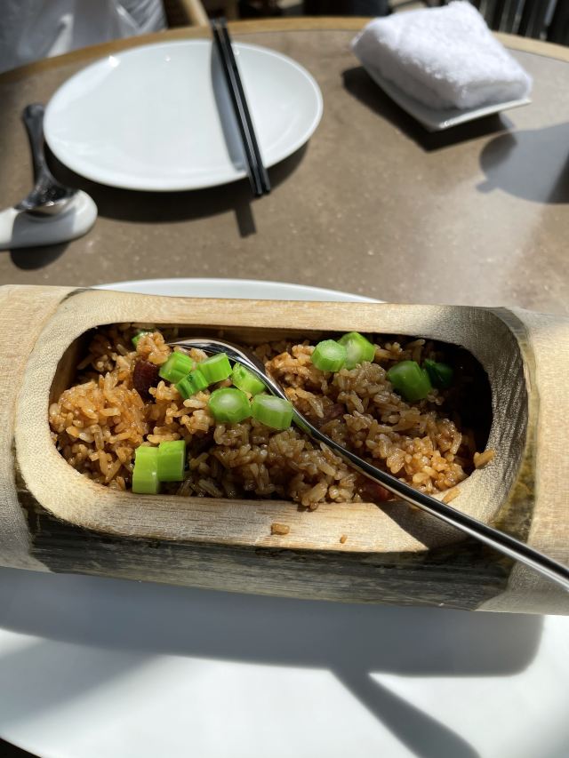 悦榕庄整体风格还是很好看的,黑白瓦片,和其他的地方悦榕庄不一样的是坐落在桂林有山有水,更像一幅水墨画 但是最让人愤怒的是作为老牌五星级酒店的服务真的差到极致了,在点菜中服务员是叫一叫动一动,餐厅环境也是脏差乱,米饭等菜快吃完了也不上,小炒肉也是一盘肥肉,无法入口,和服务员说了,然后换了新的一盘小炒肉肥肉确实变成瘦肉,但是完全吃不吃小炒肉口感来,简直一盘猪肉。 竹筒饭98元一份不如街边25元竹筒饭入味,里面的佐料感觉完全没有蒸好🍾,整体味道偏腥。 餐厅有10%的服务费还有6%的增值税,并且菜单也是偏贵,两个人点三个菜六七百事没有了。 这种服务,这种菜品,真的挺不配这个价格的。