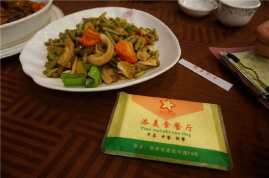 位于贺州的市中心,最繁华的十字路口,门前就是多条线路停靠、日夜人头涌动的公交站——添美食餐厅,简直是知名企业的做派,人气很旺。看得出曾经规模很大,现在只运作两层楼,一层是快餐,三层是中餐。环境其实一般般,但价格不贵,出品实在,无需靠游客,当地人都很捧场,感觉他家的鲜牛奶很好喝。