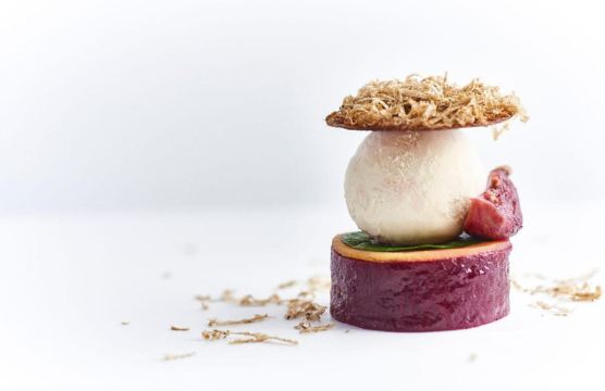 FOIE GRAS,duck breast,Coriander White Chocolate Dome ,Slowly Cooked Loch Salmon hands,Panna Cotta,gazpacho,烤牛排,思康饼