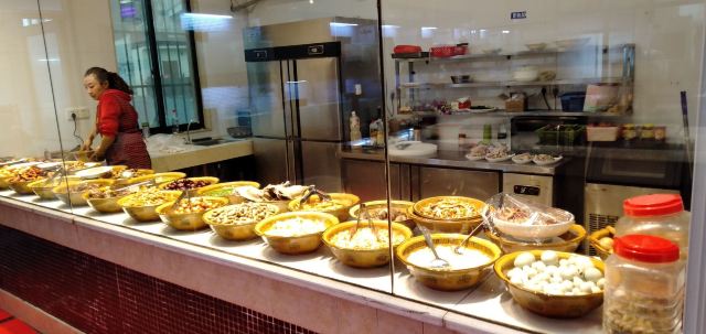 客人很多,我们从后出门口进入,看到餐厅的食材很干净