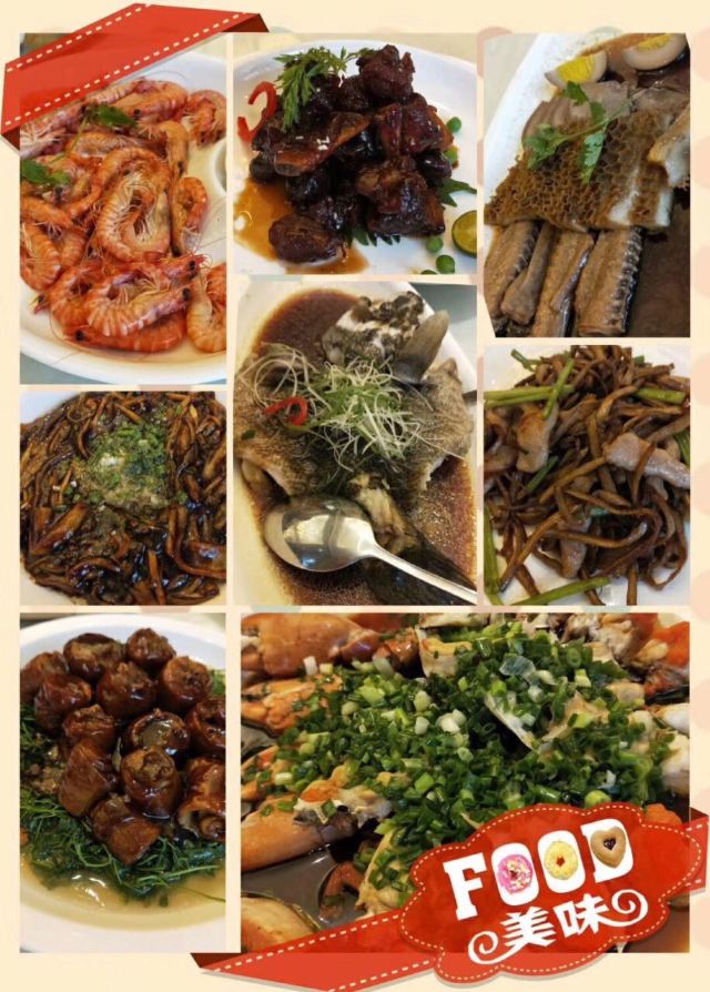 清蒸小黄鱼,白灼望潮,梭子蟹,鱼糍面,清蒸大黄鱼,葱油泥螺,清蒸岩蟹,烤生蚝,清蒸濑尿虾,年糕鱼,铁板蛏子,椒盐富贵虾,带鱼,特色鱼丝面,石浦鱼丝面