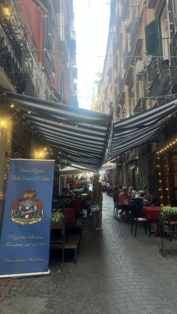 这家披萨店位于那不勒斯皇宫很近的一条街道上,1780年开业至今,店内墙上张贴着和老店历史有关的记录。这里接待过多位名人,包括美国前总统克林顿、帕瓦罗蒂等等!前几年国内很火的真人秀《花样姐姐》也曾出现过这家披萨店!不过,相比起这些,店里面最吸引人的还是烤制披萨蓝白相间的烤炉,让人一看到就联想起水手,推荐最经典的玛格丽特披萨!