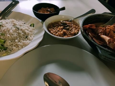 首先有空调有网络就让我很开心了,好容易满足啊。点了个斯里兰卡当地做法的咖喱蟹套餐,有两只蟹和一个炒饭,很大份,味道不错,价格是80人民币还算公道