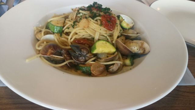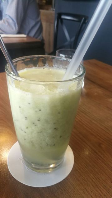 环境走简约时尚路线,装潢不错,楼下是面包蛋糕店,楼上餐厅,意式墨鱼镶饭,胆固醇高但是好吃,把墨鱼内脏清空,把米饭镶进去焗,味道进入米里面,香味浓郁,清炒蒜香蛤蜊意大利面,蛤蜊新鲜,炒的不算油腻,奇异果冰沙太酸,应该是用新鲜奇异果没有放熟几天才做,西柚汁新鲜,蘑菇汤感觉是自己煮,不是罐头货色。服务员态度好但是经验不足,网速快。