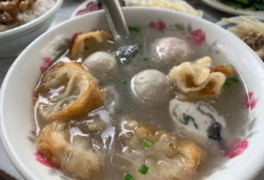 综合汤,肉燥飯,虱目鱼丸,卤小肠。,肉燥油條,粉蒸,红茶,卤肉,滷蛋,鱼丸汤,干骨肉,虱目鱼肚汤,卤蛋,煎鱼肚,虱目鱼