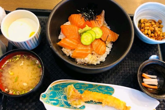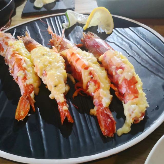 滿月壽司,厚切松阪豚排定食,明蝦玉子燒,生魚片,蝦天婦羅定食,紅蟳冬粉鍋定食,炸蝦,无骨牛小排,手卷,烧肉