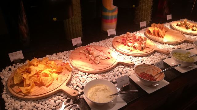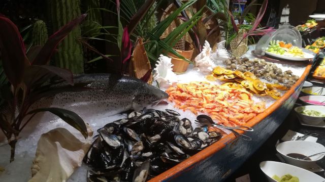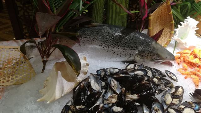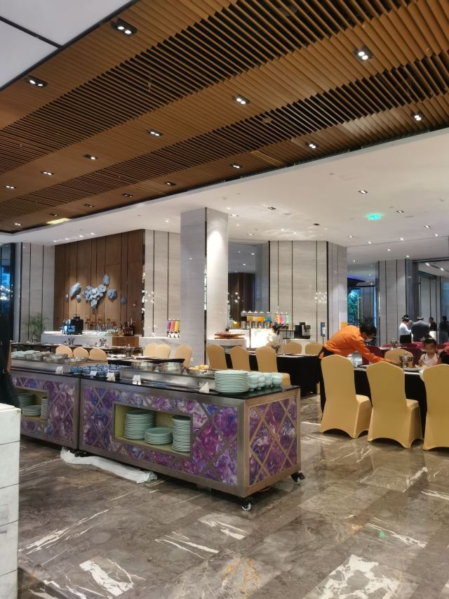 这边的生意太好了,大部分来的时候都能遇上旅行团。遇上旅行团是不幸运的,吃自助餐跟抢东西吃似的,有些喜欢吃的东西,要么就是要等很久,要么就是一上来就什么都没有了。 去大堂吧弄一杯喝的到自助餐这一边,居然没有人可以帮忙,必须要自己亲自跑一次,虽然只是隔壁,但是同一家酒店的服务人员,感觉把部门分的那么清楚,怪怪的。