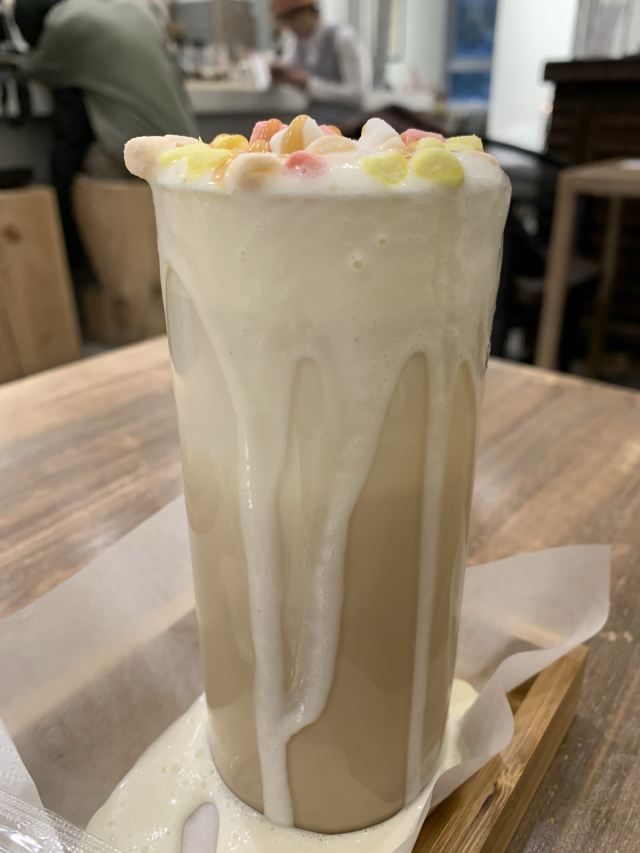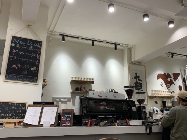 周末想来杯好喝的咖啡 就就来九草吧 咖啡真的非常浓郁 香浓不苦不酸 很对味 「Dirty」 浓缩咖啡到冰牛奶里面 浓缩咖啡很纯 相融合后的比例刚刚好 非常浓郁又顺口 「海盐焦糖戚风」 咖啡一定要配甜点 海盐焦糖戚风是基本款 但很好吃 两块戚风叠放在鲜奶油 焦糖碎片洒在蛋糕上加上焦糖酱很香 不过整口吃下去还是鲜奶油味重 「new drink 甜caramel」 店内新品吧 海盐奶盖加棉花糖的概念 咖啡常温比较没那么浓郁 带有淡淡的焦糖香气 应该可以赢得很多少女的心 「鸡翅」 这个就很一般了 店内环境明亮悠闲 2楼还有开放的空间 咖啡很棒 想喝好咖啡的话就来这里
