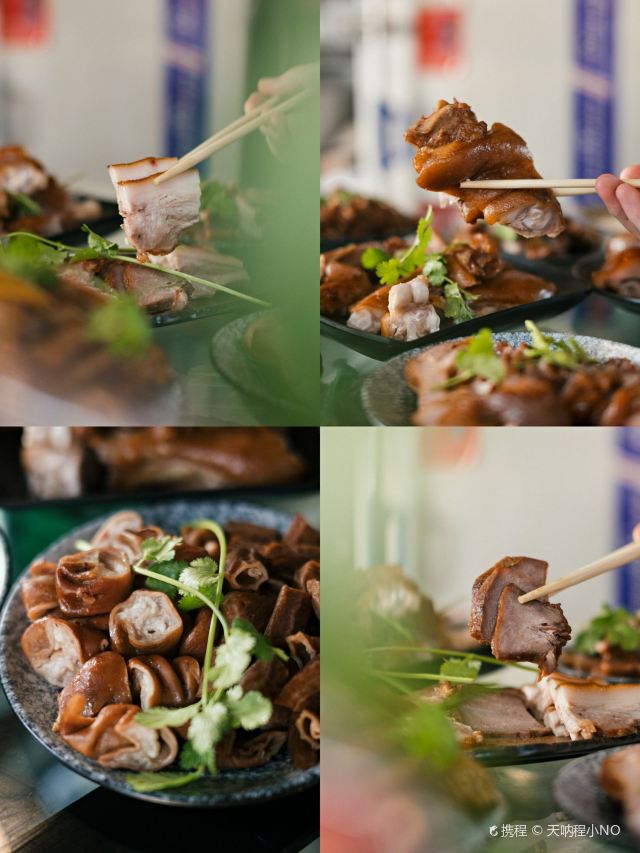 天呐程小NO🐷🐷🐷 记得在学校的时候,非常爱吃一家店的猪头肉炒饭,他们一路从路边摊开到学校有了店面,味道真的是非常好,最近惊喜的在昆山发现了一家主打“猪头肉”的店——柴门外,为了这个猪头,我穿过整个市区也要吃到。 🥓🥓🥓 这家卤味店的熟食都是现切的,老板说他们做的猪头肉不用蘸调料,直接吃味道最好,猪头直接卤好,需要什么部位就现切,挑了一块肥瘦相间的,切成薄片,吃起来肥而不腻,特别是带皮的还很有嚼劲。 🍲🍲🍲 还有大肠小肠双拼,非常洗的很干净,大肠吃起来又软又香又入味,还有肥滋滋的油冒出来,嘴巴里太充实了,小肠相对比较有嚼劲,两种不同的口感一并享受。 卤好的猪蹄看着也超级诱人,肉炖的很软糯,满满的胶原蛋白,让整个猪蹄吃起来糯糯的,但又不会很烂,非常的Q弹。 🍖🍖🍖 当然,猪舌头、猪肚、猪鼻嘴我也都喜欢,我想说,猪头是个宝,啥啥都好吃,对了,这里还有老板特质的柠檬凤爪,正好买点带回家可以晚上看电影吃,简直绝配。 🔷店名 柴门外·匠人猪头肉 🔷地址 昆山北门路1251号 #我的日常 #探店 #昆山探店 #苏州探店 #跟我来探店 #周末探店 #探探网红店