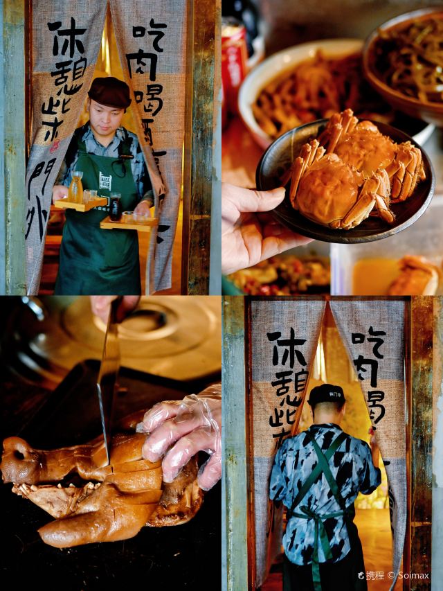 Soimax#美食旬味会 谁能想到❗在昆山还藏着这么一家精致的卤味小酒馆❗好吃😋又好拍~~ - 🎇进店,木质桌椅、暖黄灯光,每一处细节都有着独特的韵味~满满的山野风中还带着温馨的烟火气,松弛感氛围感直接拉满!在这里拍照,张张都能出大片~📸 ✨同时它家菜品品质高到离谱,就像开了挂一样✅✅ - 🦀醉蟹和🦐醉虾简直👍🏻!浓郁醇厚的味道,深深渗透到每一丝蟹肉虾肉里,很入味!同时每份都搭配上温润的绍兴百年老店的黄酒,味蕾瞬间被点燃,每一口都是满满的享受~and精酿也各地寻来的,也很有特色😀 - 🧡不过店里的卤味才是真正的招牌选手!特别是猪头肉,那口感,吃一次就狠狠爱上!每一块猪头肉都软嫩多汁,卤香四溢,猪耳朵则是又脆又有嚼劲,嚼起来嘎吱嘎吱的,越吃越香,根本停不下来 - 🍽最后还有烤羊🐏腿,一点膻味都没有,外皮金黄酥脆,里面的肉鲜嫩多汁,搭配上清爽的生菜🥬,简直是神仙组合,瞬间爆炸❗ - 🍻 柴门外·匠人卤味小酒馆 📍 昆山前进西路1188号 🚗可自驾🅿️也🉑地铁11号,很方便👀 #真香小吃大集合 #尝一尝地道老字号 #当地才能吃到的美食 #月度专项计划