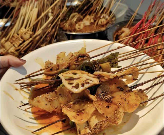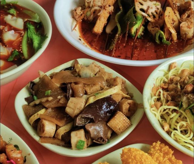 台杂炸杂炸我感觉有点像我们学校食堂的烤盘,味道挺香的,就是太咸了点,看别人的评论说是宽粉多,我的是豆腐皮多这个感觉一般凉面这个凉面我强推0 建议大家多糖多辣椒甜辣味的,里面还有麻酱,走 超级好吃白钵钵鸡有的比较入味,有的就一般,推荐无骨鸡爪,鹃鹑蛋,素鸡肠,面筋,土豆片这些。这个底汤很香,不是很辣
