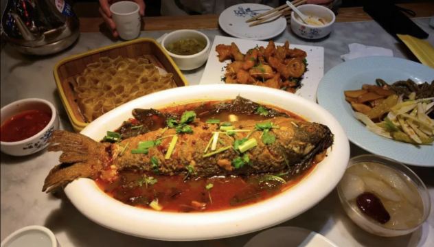 傅山辣椒炒鸡,京酱肉丝,粗粮组合,吊地瓜,野菜丸子,羊肉烧卖,自制老酸奶,毛血旺,能喝汤酸菜鱼,铜川酥梨,水煮肉片,老式京酱肉丝,招牌待客肉,酸菜茭壳儿,羊肉锅,炸野菜丸子,海鲜蒸锅