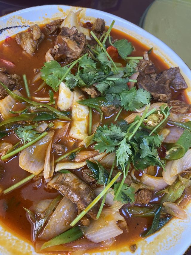 这是一家靠近莫高窟和机场的靖远羊羔肉店,下午来的,老板服务态度很好,手把羊肉软,孜然辣椒面比别家的更香,特色羊羔肉香糯,里面的土豆粉片劲道,炒饼配沙洲啤酒🍻味道不错。